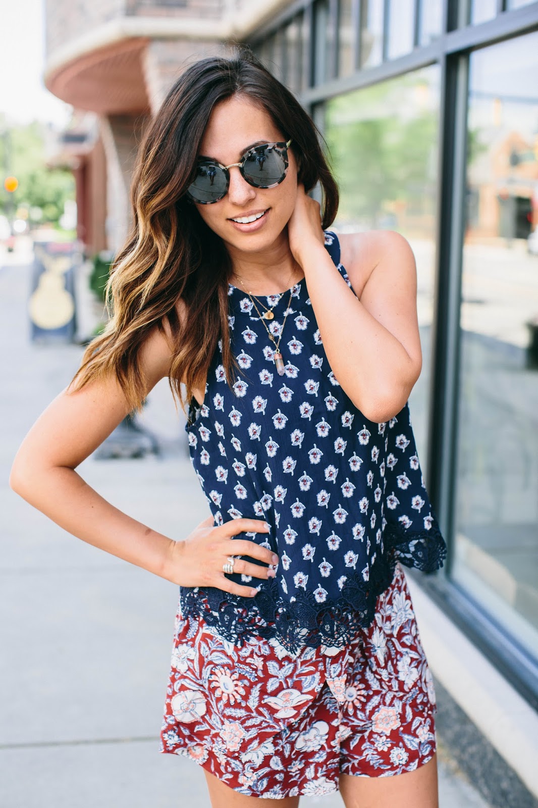 top + shorts- (on sale under $20) abercrombie and fitch // shoes- forever 21 // sunglasses- dolce and gabbana
